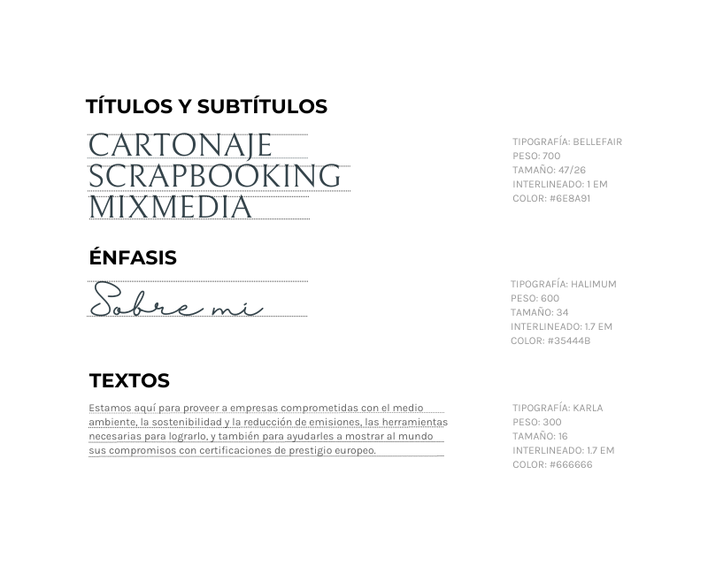 En los elementos de énfasis se utiliza una caligrafía manuscrita que aporta calidez y un toque humano, reforzando la esencia artesanal.